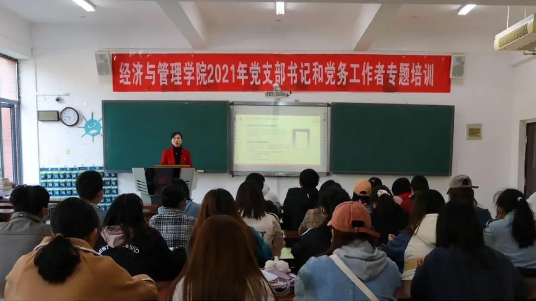 为进一步提升党支部书记和党务工作者的综合素质和业务能力,推进党支部标准化规范化建设、规范发展党员程序、保障发展党员质量,增强党支部的凝聚力和战斗力,2021年11月10日,经济与管理学院在花溪校区学院9238...