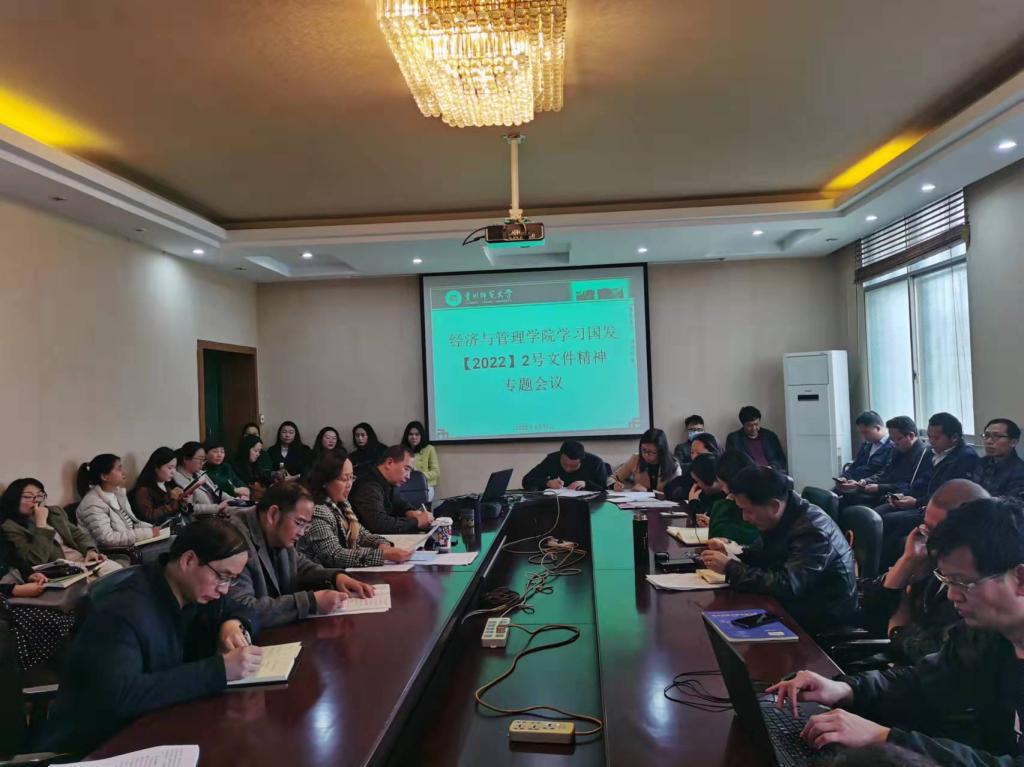 2022年3月11日下午,经济与管理学院在宝山校区学院会议室召开教职工政治理论学习会议,学院全体教职工参加了会议。会议由院党委书记吕萍主持。 会上,吕萍领学了《国务院关于支持贵州在新时代西部大开发上闯新路...