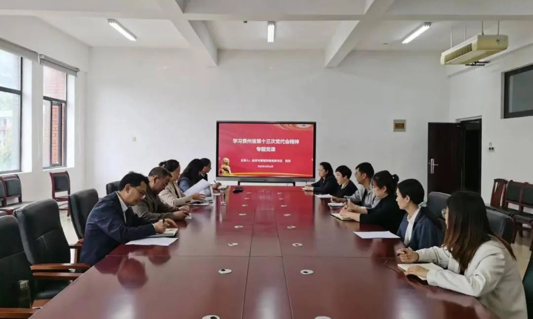 4月26日上午,经济与管理学院党委书记吕萍在花溪校区学院会议室为党委班子和行政党支部党员上“学习贵州省第十三次党代会精神”专题党课。学院党委委员、领导班子成员、行政党支部全体党员到场聆听。 吕萍的讲授...