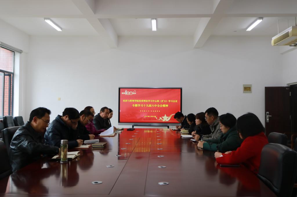 2021年11月15日上午,经济与管理学院在花溪校区学院四楼会议室召开党委理论学习中心组(扩大)学习会议,专题学习十九届六中全会精神,学院党委委员、党政班子成员、科级干部、党支部书记参加了会议。会议由院党...