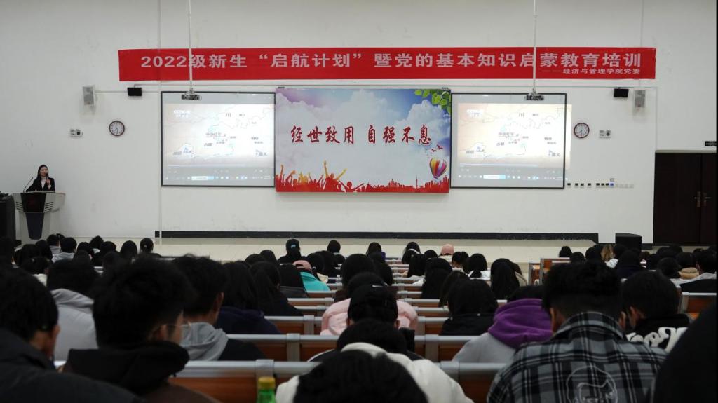 为深入学习中国共产党的历史,提升2022级新同学的品德修养,培养爱党、爱国情怀,引导新同学们积极向党组织靠拢,经济与管理学院于2022年11月30日在学院楼9315教室开展2022级新生“启航计划”暨党的基本知识启蒙...