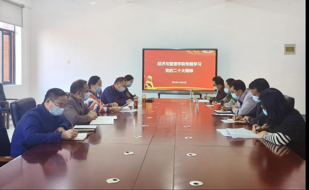 2022年10月25日下午,经济与管理学院在花溪校区学院会议室召开党委理论学习中心组(扩大)学习会议专题学习党的二十大精神,学院党政领导、党委委员、科级干部参加会议。会议由学院党委书记吕萍主持。 吕萍指出,...