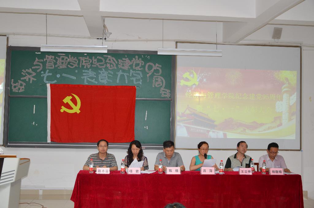 经济与管理学院于6月28日下午在花溪校区GJ6301召开纪念建党95周年暨“七·一”表彰大会。学院党委书记陈椽、院长吕萍、副书记项君、副院长王立伟 、杨馥榕、组织员赵本喜出席会议;党委秘书、辅导员、班主任、学生...