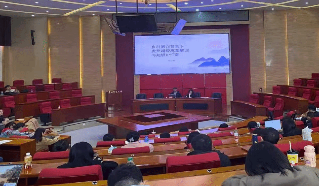 讲座中,刘小翔先生以“戒指换山区教学楼”这一经典案例为引,生动展示了新媒体传播在公益与乡村振兴领域的巨大潜力。他结合自身运营“贵州超话”等成功案例,系统剖析了“群众文化超级IP”的构建逻辑,并以“村BA”、“村T”等贵州新兴热门现象为例,深入解读了贵州如何依托“三大超级文化、四大文化工程”的战略布局,成功将文化资源转化为文旅产业发展的强劲动力。通过丰富的案例展示和实拍影像资料,他引导同学们从文化传播与IP运营的新视角,重新审视乡村振兴中的产业机遇,为未来在该领域的创新创业提供了宝贵的思路。