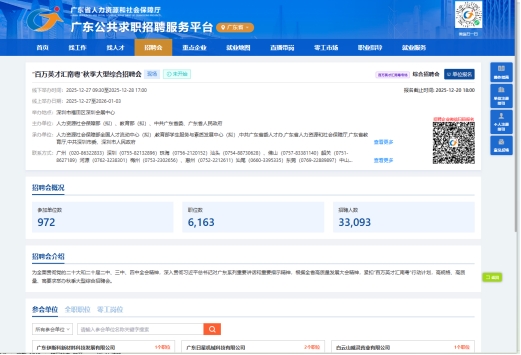 广东公共求职招聘服务平台(https://ggfw.hrss.gd.gov.cn/recruitment/internet/main/#/jobFairsDetail?bcb048=1985267513660088321)