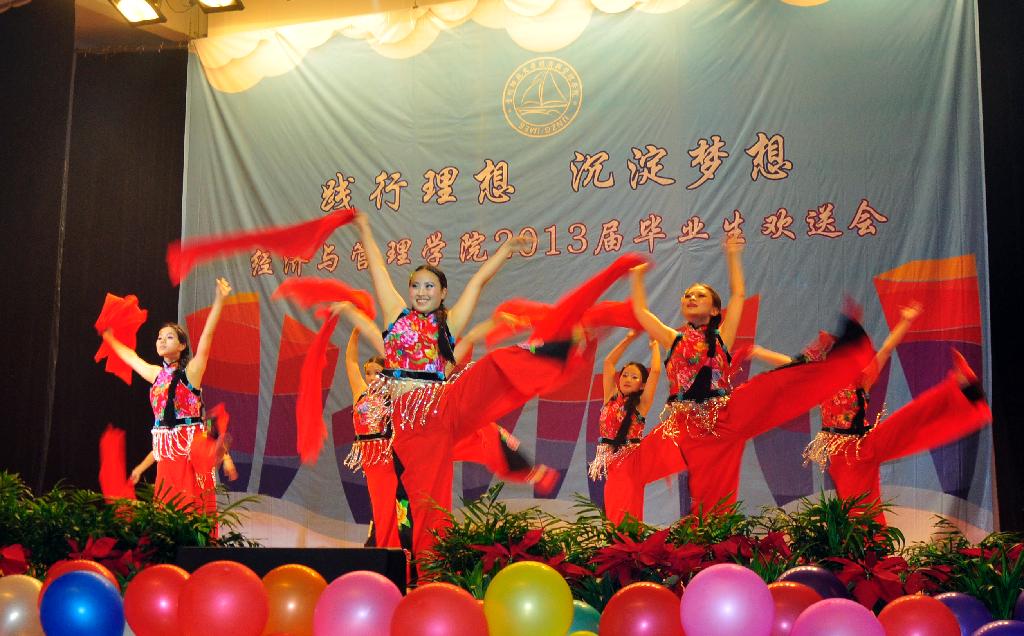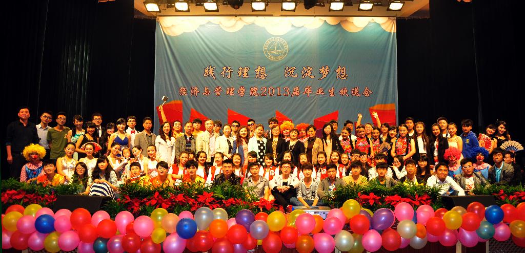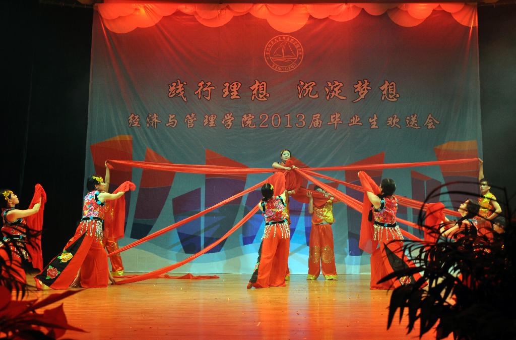 6月1日下午,经济与管理学院2013届毕业生欢送会在学校大礼堂举行。经济与管理学院院长吕萍,党委书记巴建伟、副书记项君,副院长王立伟及学院师生800余人欢聚一堂,观看欢送会文艺表演。