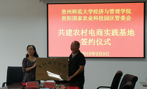 随后吕萍与王家兴、于强签署三方战略合作协议,成立农村电商研究院。学院也与贵州贵阳国家农业科技园区管委会签约共建农村电商实践基地。