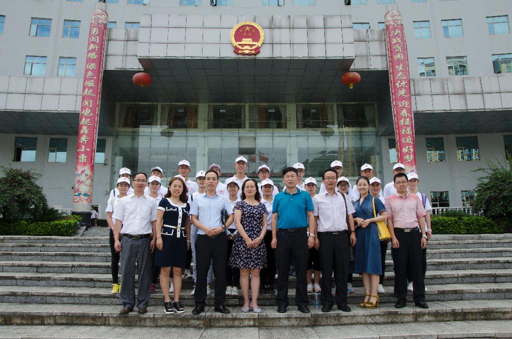 我院三下乡团队于7月12日上午赴石阡开展活动。当日下午,石阡县政府代表与我院代表于石阡县政府会议厅开展了2017“三下乡”社会实践活动对接见面会。石阡县委、县政府及相关部门主要负责人范永国、曹令、陈芳等以及我院党委书记陈椽、院长吕萍、党委副书记赵本喜、副院长杨馥榕、党委委员刘晓婧、电子商务系主任陈涛、客座教授易永祥、电子商务系教师贺洁、团委副书记向凯麟、我院驻双山村“第一书记”李庆等出席了此次会议,“三下乡”22名队员到场参加。