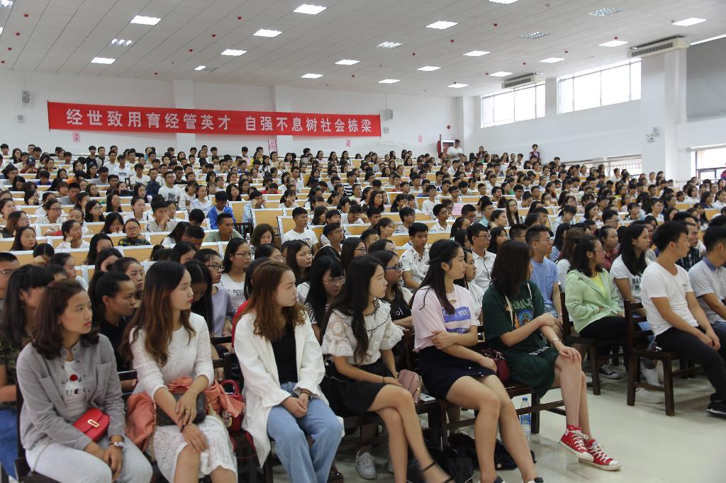 最后,陈椽以别具一格的“高铁票”为喻,祝贺591名新同学乘上通往梦想的经管高铁,与所有经管师生共同承担建设学院的使命和责任,共同分享学院发展的成就和荣光。他以学院“经世致用、自强不息”的院训为契点,鼓励同学学会做人、做事,注重人文精神、人格养成、人生发展;并强调“育人”比“育才”更重要,希望同学们更多地思考人之为人的要义,向同学们提出了“理解人文价值”,“坚守人格底线”,“反省人生意义”的三大要求,期望新生在毕业后能成为具备完整知识结构、较强实践能力和突出创新意识的合格的社会主义接班人。