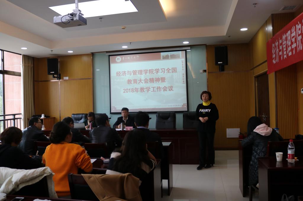为深入学习贯彻党的十九大精神和全国教育大会精神,落实新时代“高教40条”,经济与管理学院于12月1日在遵义师范学院学术交流中心三会议室召开学习全国教育大会精神暨2018年教学工作会议。会议由学院党委书记陈椽主持,学院全体教职工参加会议。