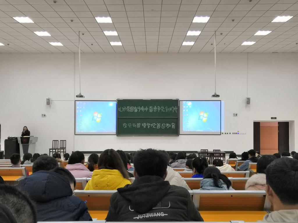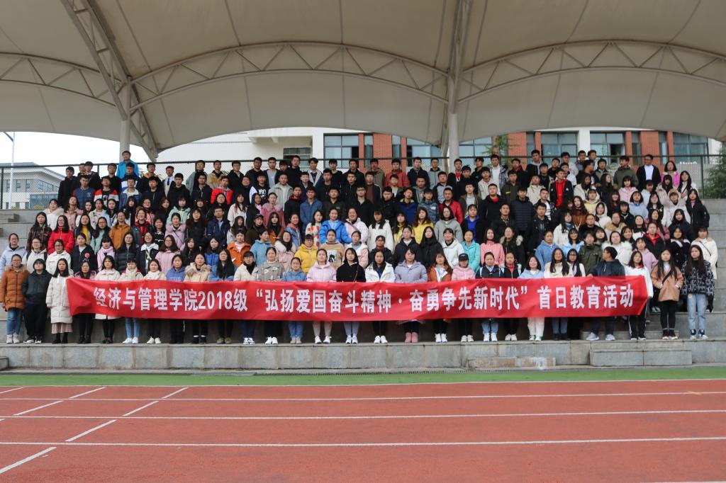 为进一步贯彻落实习近平新时代中国特色社会主义思想和党的十九大精神,号召我院全体学生在新时代弘扬爱国奋斗精神,将爱国之情、报国之志融入到学习生活中来,实现立德树人根本目标,2019年2月24日,经济与管理学院17个班级1200余名学生开展了以“弘扬爱国奋斗精神 奋勇争先新时代”为主题的首日教育活动。活动围绕“思想理论教育”、 “学风建设”、 “创新创业”、“职业生涯规划”、“劳动教育”等内容展开。