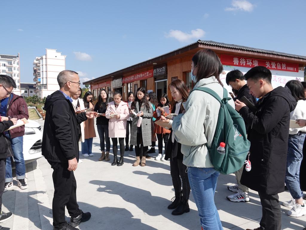 在考察调研中,研究生听取了永兴镇吴镇长对永兴镇地形地貌、经济发展、社会民生等基本情况的介绍,了解了该镇脱贫攻坚和乡村振兴的做法和经验;听取了遵义卉之丰现代农业有限公司王进国副总经理对该企业“苗圃+旅游”产业发展模式的介绍,了解了“苗旅一体化”产业基地发挥政策和资源优势,带动农村产业发展和助力脱贫攻坚情况。吕萍院长在讲话时指出,永兴镇扶贫攻坚和乡村振兴的做法取得了成效,推进了“苗旅一体化”的实现,其建设机理是值得产业人员以及全体师生深入探讨和总结的,她要求研究生在实习、科研中要有效将专业与产业对接,积极为乡村建设建言献策。考察调研活动结束前,学院与遵义卉之丰现代农业有限公司举行了“研究生实习实践基地”的签约仪式,授牌该企业成为学院的研究生实习实践基地。