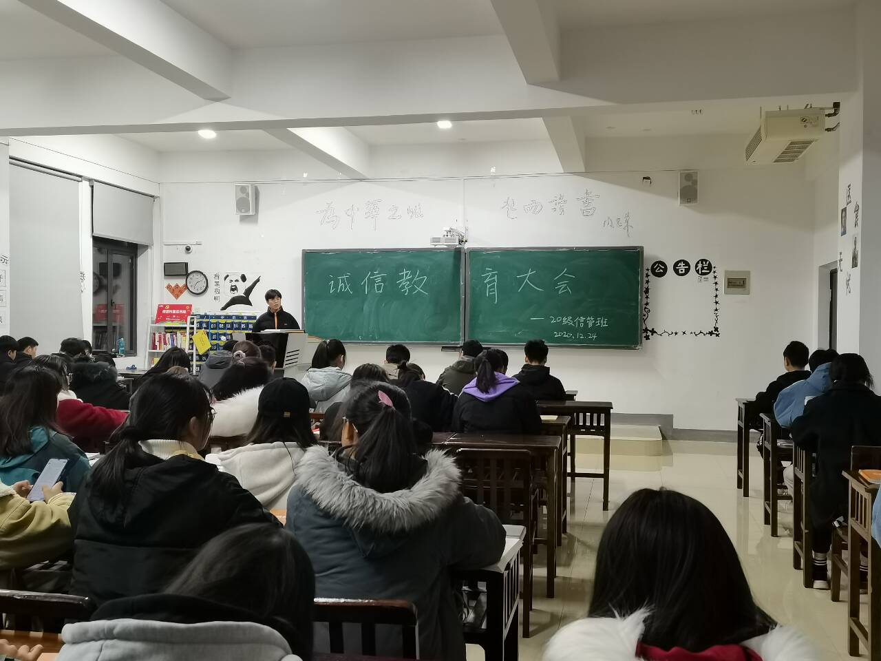 为进一步提高学生的诚信意识,营造良好的校园文化氛围,经济与管理学院于2020年12月24日、25日采用线上线下形式召开了“诚信考试”主题教育活动。本次活动由学院党建办发起并组织,全体党员、入党积极分子和共青团员参加。