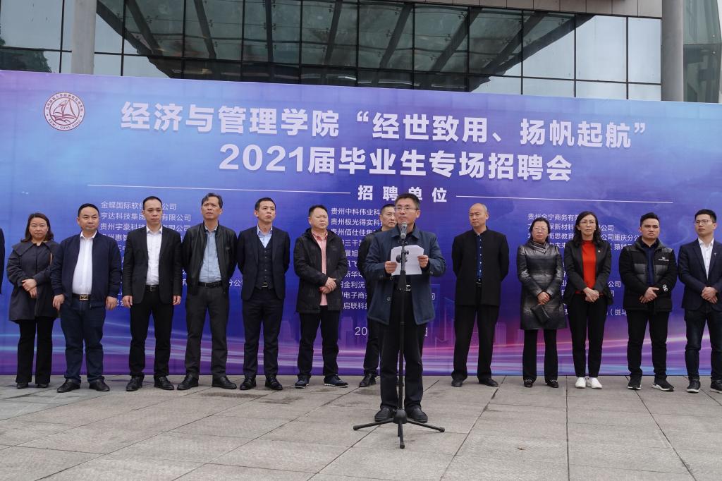 为提高2021届毕业生就业质量,实现优质就业,促进高校与企业的良性互动,满足用人单位选才以及毕业生择业就业的需要,2021年4月27日,经济与管理学院在贵州师范大学花溪校区会议中心前举办2021届毕业生招聘会。贵州师范大学副校长赵守盈、研究生工作部部长兼研究生院副院长杜芸、招生与就业指导处处长黄平惠及各企业领导出席招聘会。亨达科技集团股份有限公司、贵州佰仕佳科技集团股份有限公司、金蝶国际软件集团公司、融创西南区域贵州公司等30多家用人单位参与此次招聘会。