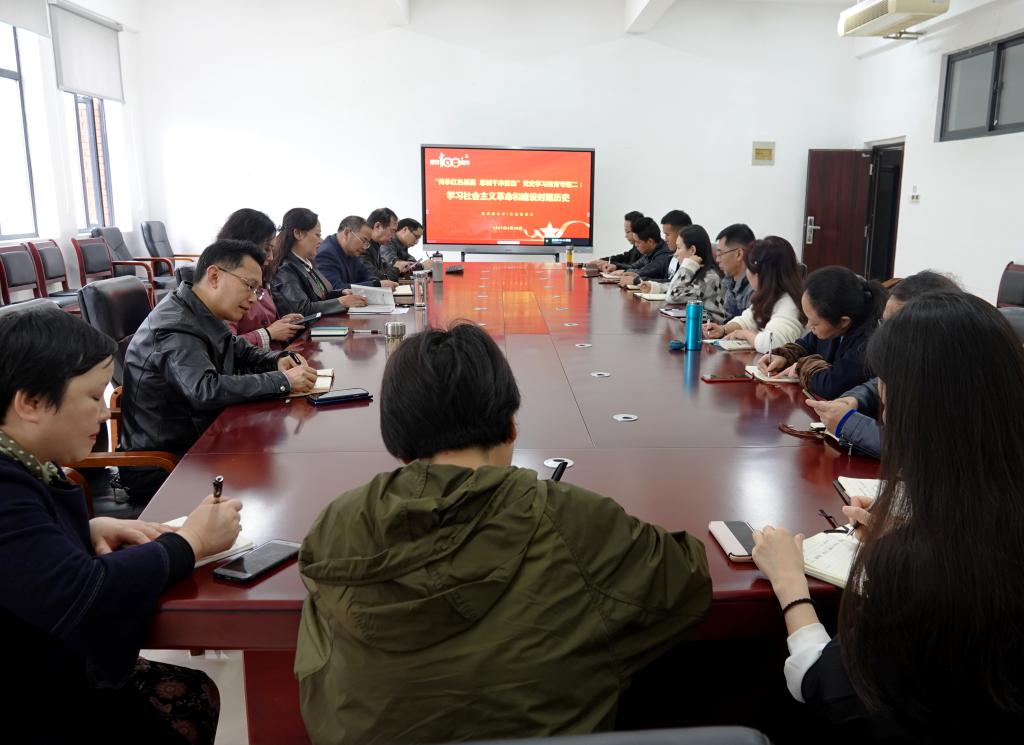 副院长蒲文彬带领大家学习了党在社会主义革命和建设时期的奋斗历程及启示。他指出,从1949年中华人民共和国成立到1978年党的十一届三中全会召开,是我国社会主义革命和建设时期,这一时期,中国人民在中国共产党的领导下,实现了从新民主主义向社会主义的过渡,并在此基础上开始了社会主义建设道路的艰辛探索。回顾总结党领导人民进行社会主义革命和建设的奋斗历程,对于正确认识中国特色社会主义的形成与发展,坚定中国特色社会主义自信,具有重要意义。