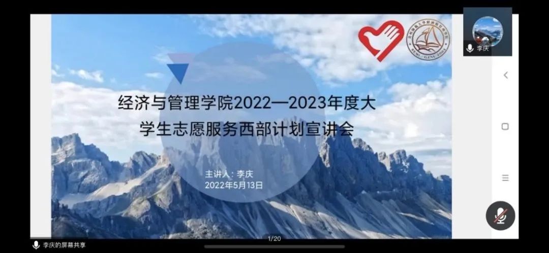 为进一步促进2022届毕业生了解志愿服务西部计划,引导更多大学生关注和参与志愿服务西部计划,5月13日,经济与管理学院通过腾讯会议召开了志愿服务西部计划线上宣讲会,共计200余名毕业生参加,会议由学院团委书记李庆主持。