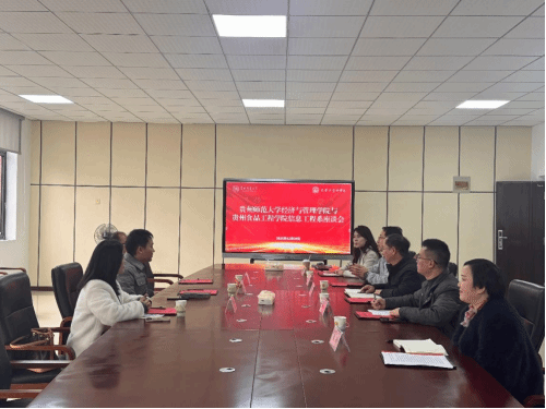为深化跨院校合作、共谋学科发展与人才培养新路径,2025年12月30日上午,经济与管理学院与贵州食品工程学院信息工程系交流座谈会在学院9426会议室举行。经济与管理学院党委书记赵本喜等党政领导、贵州食品工程学院信息工程系副主任袁小洁等出席座谈。座谈会由经济与管理学院市场营销系主任、职业技术教育学位点负责人王玮主持。