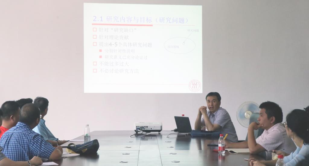 2018年7月21日下午,经济与管理学院国家级课题申报辅导会在学院四楼会议室顺利举办。中国人民大学商学院院长、CNAIS主席、长江学者毛基业教授,莅临我院给参会人员作了“国家级基金项目申请与常见问题释疑”的专题辅导报告。学院党政领导、全体教师、部分研究生参加了辅导报告会。会议由学院党委书记陈椽主持。