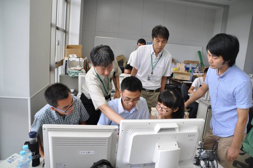 日本福山大学工学部信息工学科伍贺教授为学生讲解机器人编程