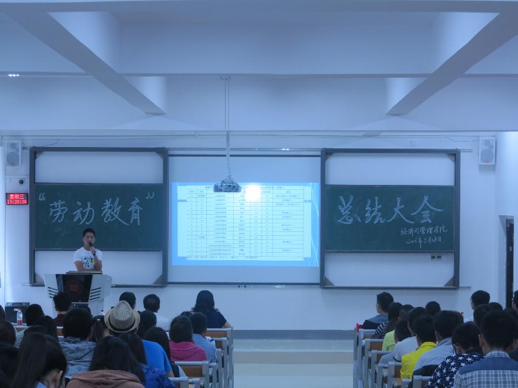 5月18日,经济与管理学院在学院楼9124教室开展了劳动教育第一阶段总结大会,我院党委副书记项君、团委书记张晶晶以及全体辅导员出席此次会议,各年级近100名学生代表参加会议。