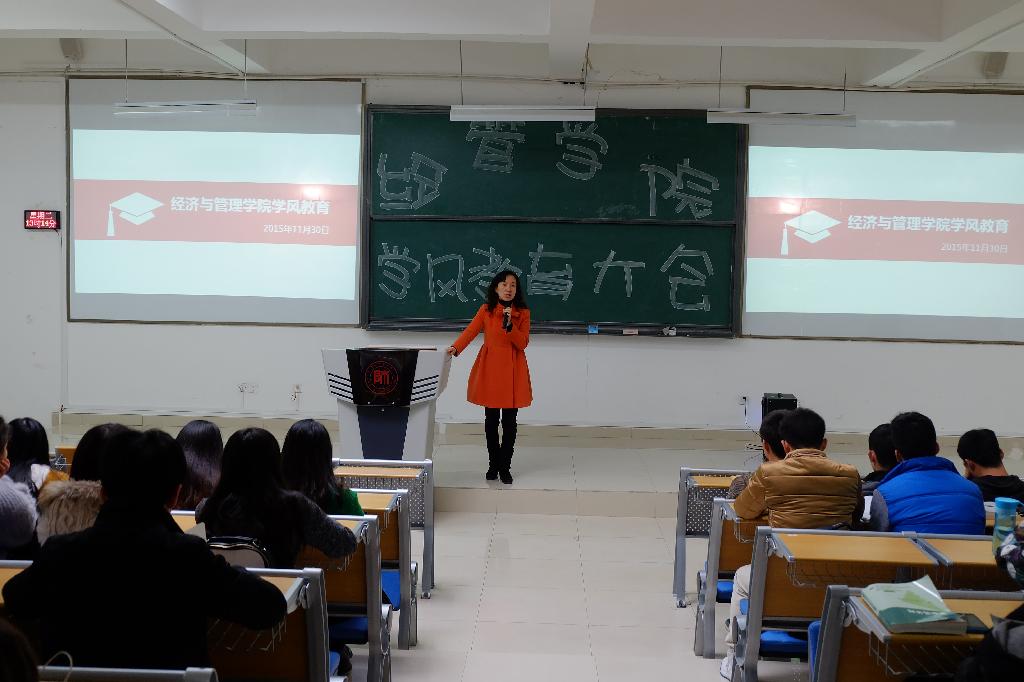 据悉,本次学风教育活动也是经济与管理学院烛光导航系列活动之一,根据学院学生不同年级特点进行,注重大学生应有良好品质和广义学习意识的培养,切实推进学院学风建设。