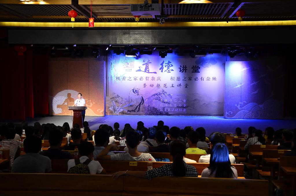 9月11日上午,由贵阳市总工会主办,花溪区总工会、花溪区劳模协会协办的贵阳市总工会2015年“劳动模范上讲堂”活动在花溪区孔学堂道德讲堂精彩开讲。我校经济与管理学院组织80余名2012级学生代表到场聆听。