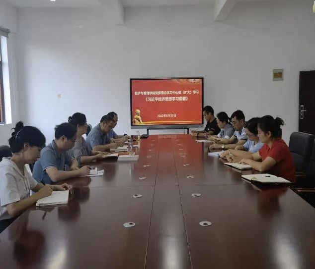 2022年8月29日上午,经济与管理学院在花溪校区学院会议室召开党委理论学习中心组(扩大)学习会议,学院党政领导、党委委员、科级干部参加会议。会议由学院党委书记吕萍主持。