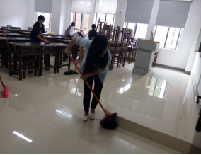 “大爱清尘,党心随我行”,9月16日下午4点,经济与管理学院第96期入党积极分子发展对象在学院楼进行义务劳动,打扫学院楼一楼二楼教室,为即将正式上课的2015级新生提供一个舒适的环境。