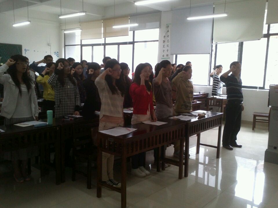 随后由赵本喜带领全体党员进行了新党员入党誓词宣誓和老党员重温入党誓词。此后由项君为同学们做了“做一名合格的共产党员”为主题的专题讲座,报告从党的纪律、党的作风、党员的权利与义务三个方面结合大家的学习、生活、工作进行了详细的讲解。