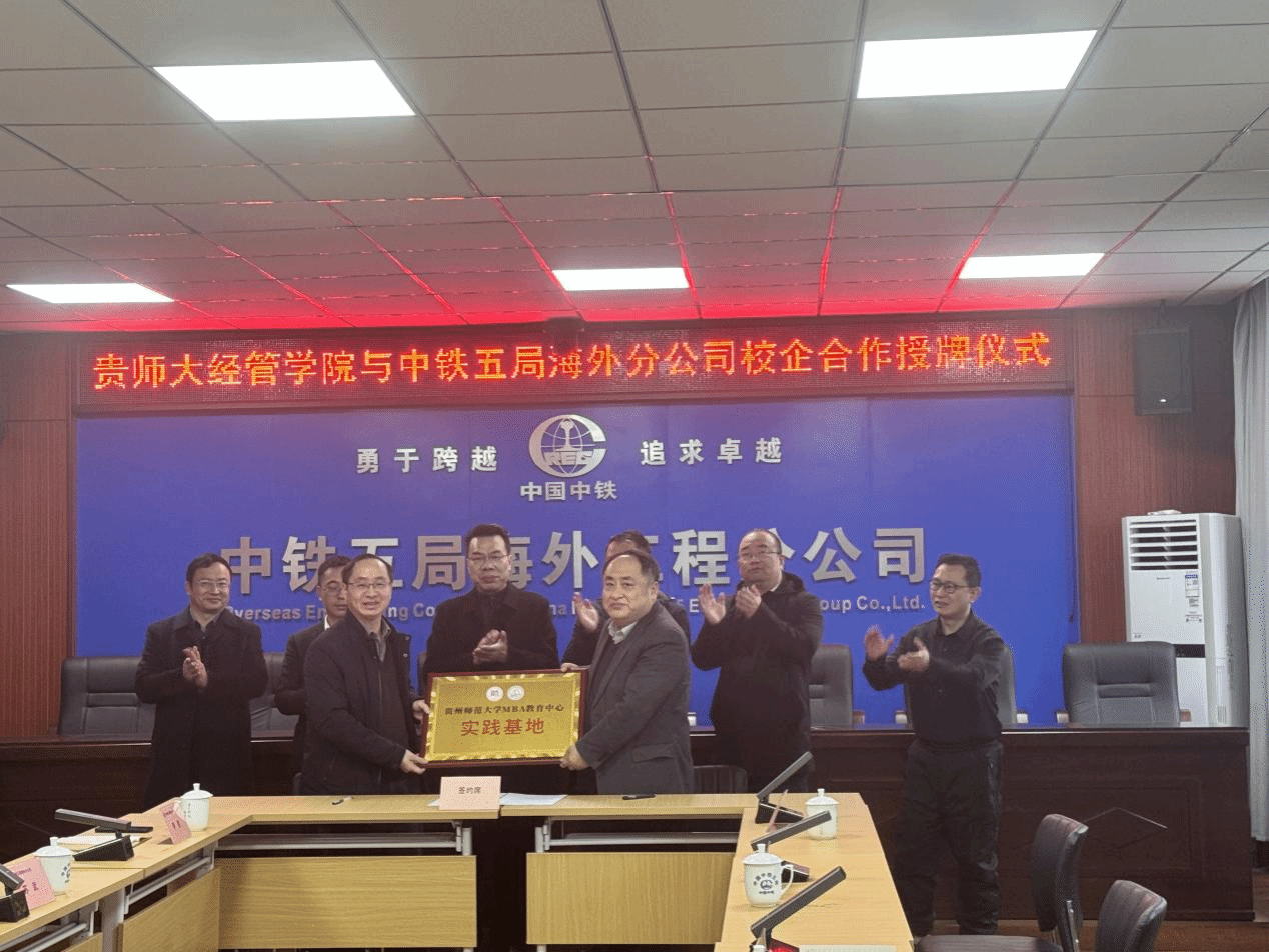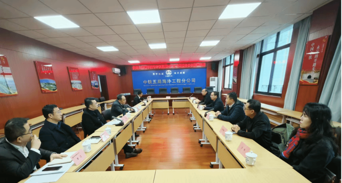 2025年1月15日上午,为深化校企合作与产教融合,经济与管理学院与中铁五局集团有限公司海外工程分公司在海外工程分公司总部会议室联合举办了校企合作人才建设座谈会及签约授牌仪式。