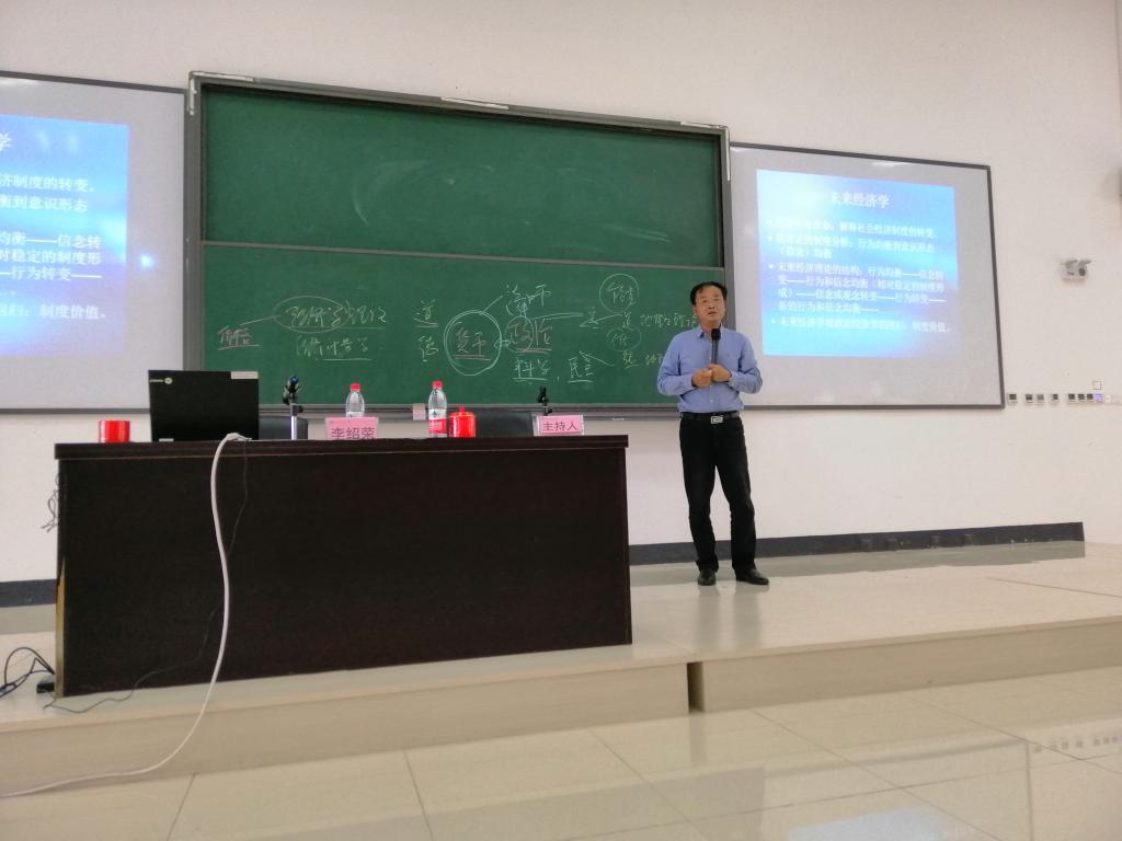 6月17日上午9点,北京大学经济学院李绍荣教授应学院邀请在理科9315教室作了题为“经济学的未来发展”的学术报告。杨胜天副校长莅临讲座现场,学院经济学系部分师生到场聆听。报告会由龙正荣副院长主持。 李教...