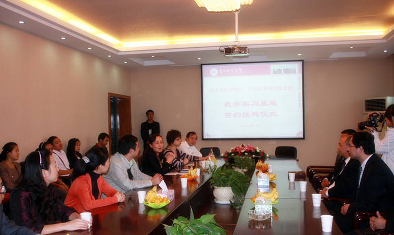 10月18日下午,经济与管理学院与中投证券贵阳营业部共建教学实习基地签约挂牌仪式在经济与管理学院会议室举行。中投证券总经理张靖、市场总监侯本榕、经济与管理学院院长吕萍、院党委书记巴建伟等学院党政领导、...