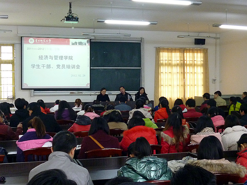 2月28日、29日,经济与管理学院在宝山、白云两校区分别举行了全体学生干部、学生党员培训会。院党委副书记项君、组织员赵本喜、分团委书记高雅杰及各年级辅导员老师出席,两校区近300名学生干部、学生党员参加了...