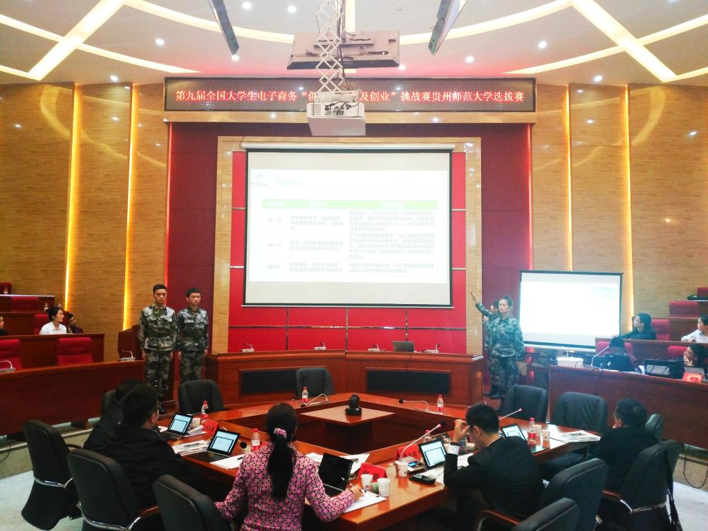 2019年5月9日上午九时,第九届全国大学生电子商务“创新、创意及创业”挑战赛校级选拔赛在贵州师范大学圆形报告厅拉开帷幕,全校共有27支参赛队,其中有13支队伍由我院学子组成。 经过现场PPT展示和专家评审答辩...