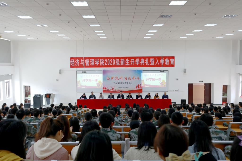 2020年10月10日上午,经济与管理学院2020级全体本科生、研究生新生在9315教室举行了开学典礼暨入学教育活动。学院党委书记陈椽、院长吕萍、党委副书记赵本喜、副院长王立伟、党委副处级组织员江剑虹、学院各系系...