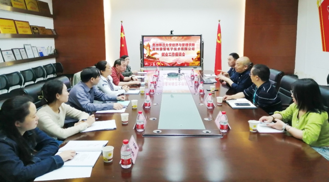 为贯彻落实教育部关于全国高校书记校长访企拓岗就业专项行动,进一步深入校企合作,切实提升我院毕业生的就业率,5月5日,贵州师范大学经济与管理学院党委书记吕萍等一行赴贵州惠智电子技术有限公司开展就业座谈...