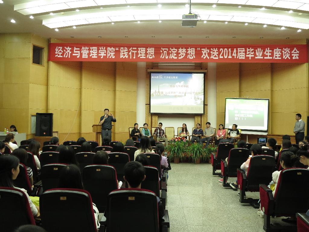 6月10日,经济与管理学院欢送2014届毕业生座谈会于田家炳三楼多功能厅召开,欢送会以“践行理想,沉淀梦想”为主题。院党委书记巴建伟、院长吕萍、院党委副书记项君、副院长王立伟、党委组织员赵本喜、党委秘书江剑...